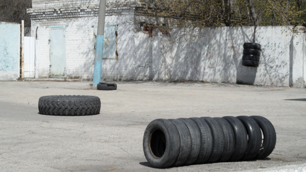 На фото видно, что покрытие беговой дорожки разрушено, плитка потрескалась и раскрошилась.