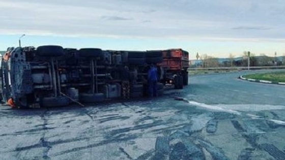 Грузовик с углем перевернулся в Абакане и перекрыл три дорожные полосы