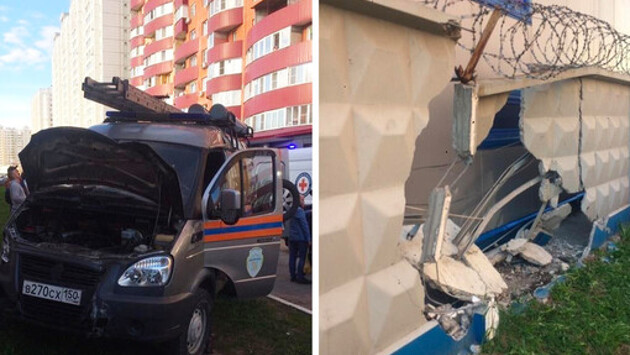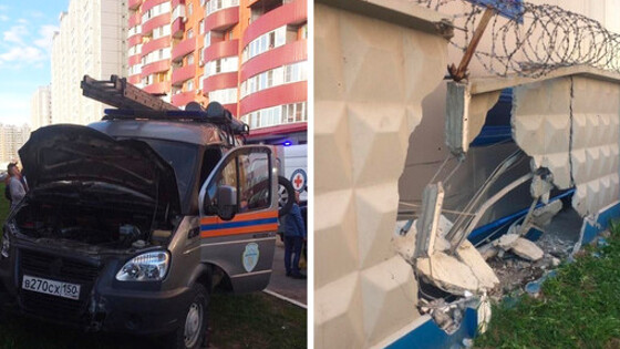 Машина МЧС сбила людей и протаранила забор в Балашихе