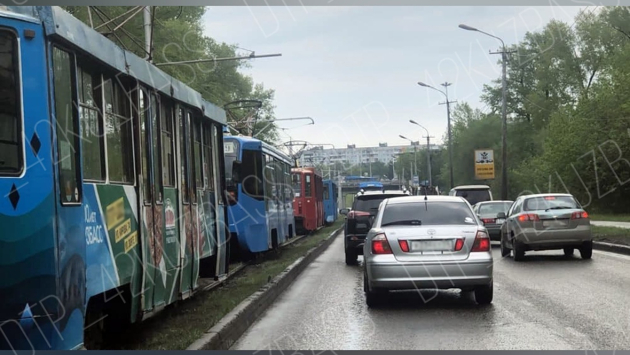 Во вторник, 18 мая, очевидец опубликовал фотографии, на которых запечатлена пробка из трамваев. Создала затор, по словам пользователя Сети, девушка.