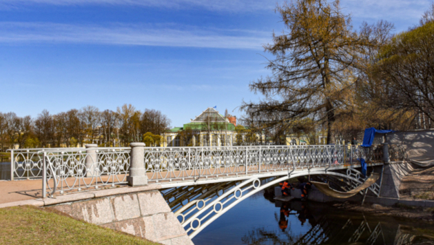 Специалисты СПб ГБУ «Мостотрест» начали работы на 4-м Таврическом мосту, перекинутом через проток между прудами в Таврическом саду.