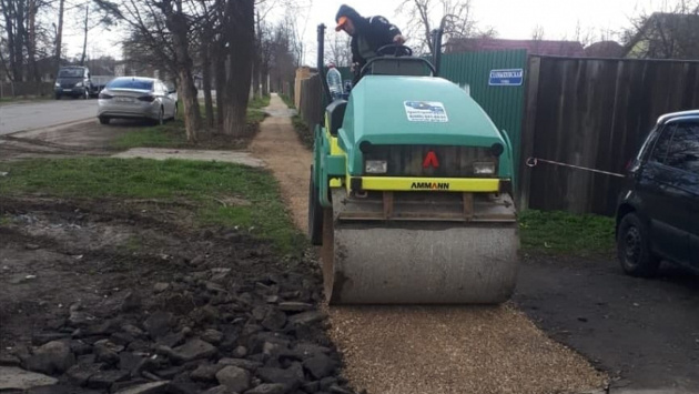 Длина тротуара, который нуждается в ремонте, – 950 м. Местами там уложили новый асфальт. Осуществляется обустройство бордюров.