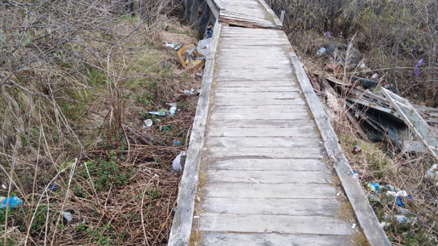 «Примите меры по срочному ремонту, пока что-нибудь не произошло из-за данного моста. Он весь сгнил, покосился, по нему ходят и мамочки с детьми, и пожилые люди, он востребован, а пройти по нему опасно», — пишет местный житель Ичкек Карятин, прикладывая фото в социальной сети «ВКонтакте» в группе «Подслушано в Аксарке».