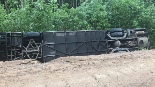 Десять человек госпитализировали из перевернувшегося автобуса в Ленобласти