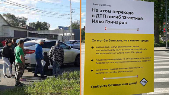 В понедельник, 15 июня, в Октябрьском районе появилась табличка с названием «На этом переходе погиб 12-летний Илья Гончаров». Ее разместила некоммерческая организация «Городские проекты Ильи Варламова и Максима Каца», сообщается в группе фонда в VK. На ней описано происшествие и способы, как избежать подобные аварии в будущем.