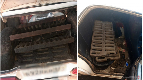 В результате автомобиль был задержан. В ходе осмотра в багажнике и салоне были найдены 7 чугунных решеток дождеприёмников ливневой канализации.