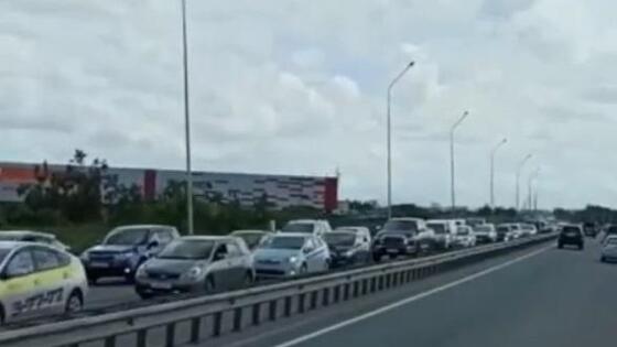 Судя по кадрам видео, автомобили двигаются очень медленно. По трассе в сторону самого аэропорта при этом движение достаточно свободное.