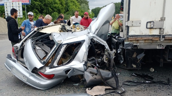 Иномарку разворотило в ДТП с фурой на Гусинобродском шоссе в Новосибирске