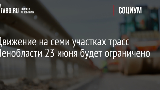 Движение на семи участках трасс Ленобласти 23 июня будет ограничено