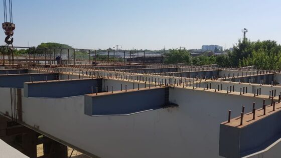 На данный момент на строящемся путепроводе укладывают несъемную опалубку, идет подготовка к устройству монолитной железобетонной плиты. Параллельно идут работы по обустройству подъездных путей.