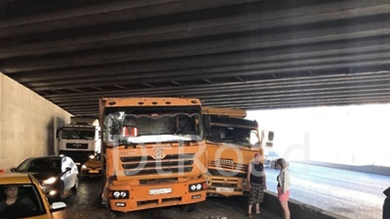 Три грузовика столкнулись под Сайкинским путепроводом в Москве