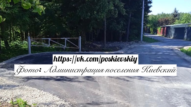 В поселении Киевский произвели ремонт автомобильной дороги от СНТ «Бонитет» до СНТ «Неглинка», которая берет начало в тупике и заканчивается у границы СНТ «Яблонька».