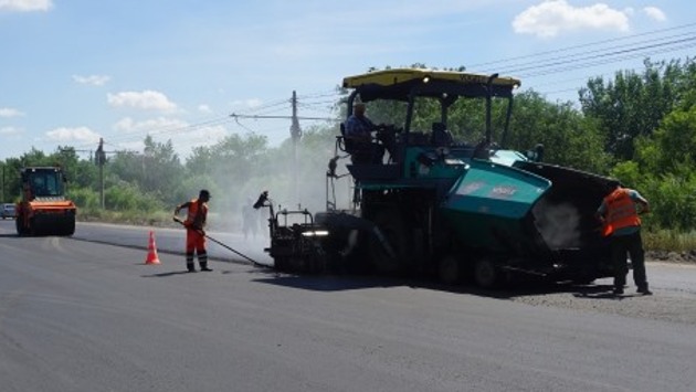 Дорожники укладывают выравнивающий слой асфальта на новом проспекте Металлургов