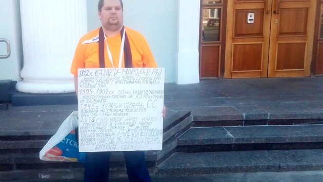 Одиночный пикет против казаков проходит у здания правительства Карелии