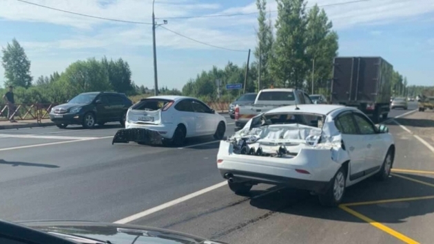 В Ярославле на Юго-Западной окружной дороге военный «Урал» протаранил две стоявшие на светофоре легковые машины. Об этом сообщили очевидцы в социальных сетях.