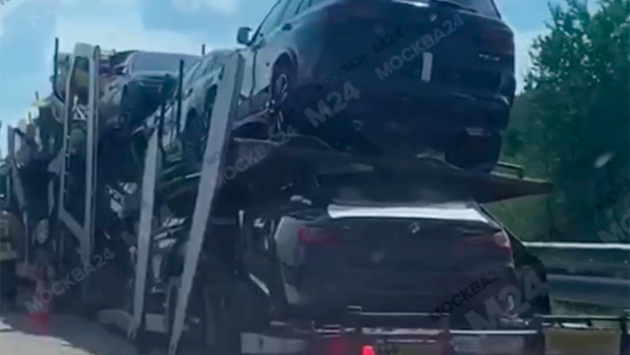 Автовоз с машинами марки BMW столкнулся с автовозом, перевозившим автомобили такси. Видео с места происшествия публикует Telegram-канал «Москва 24».