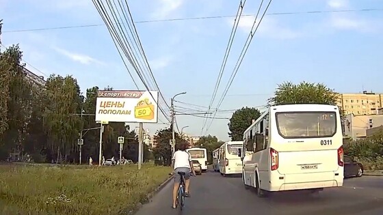 Видео: В Рязани велосипедист попытался подрезать машину в отместку за гудок