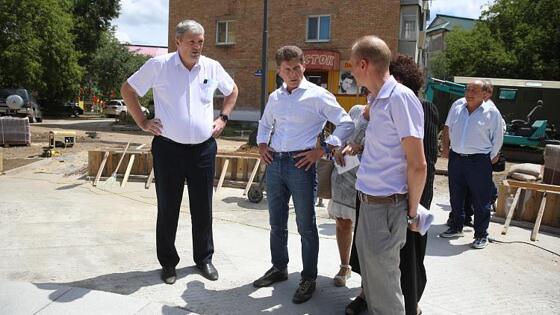 Также глава региона осмотрел сквер на улице Калининская, который тоже облагораживают по нацпроекту. Здесь разместят инсталляцию «Солнечные часы». В сквере уже произведен демонтаж бордюр и брусчатки, положен кабель, установлено освещение, залита бетонная плита для будущего циферблата, сейчас обустраивают газоны и пешеходные дорожки.