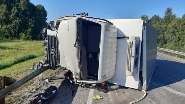 Серьезное ДТП произошло на трассе Р-255 под Новосибирском. Недалеко от деревни Вороново на левый борт завалился грузовой автомобиль, водитель оказался зажат под кабиной, но отделался переломом ноги.