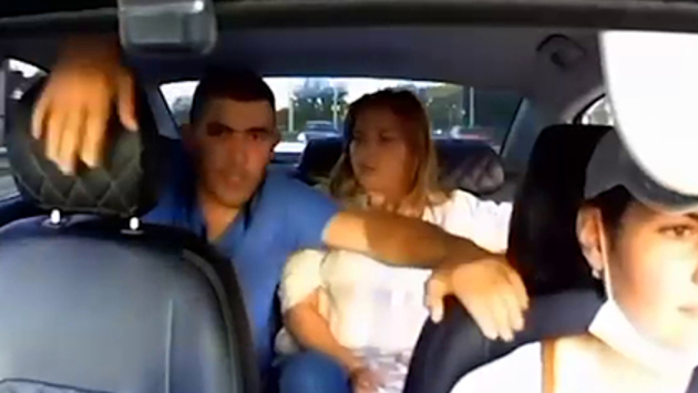 На кадрах видно, как пассажир перелезает на переднее сидение после вопроса его спутницы о том, когда он в последний раз дарил ей цветы. На это мужчина реагирует агрессивно.