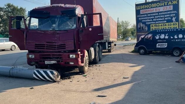 Водитель КамАЗа погиб за рулем и врезался в столб под Саратовом