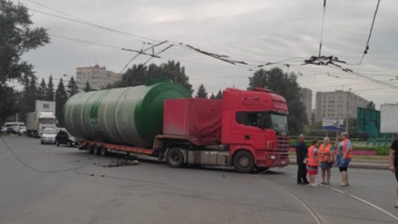 В Новосибирске около 8:20 утра на улице Сибиряков-Гвардейцев неизвестный водитель на крупногабаритном грузовике задел троллейбусные провода и уехал.