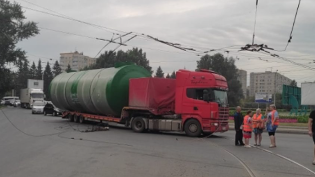 Следовавшая по тому же пути машина с цистерной вынуждена была остановиться перед оборванными проводами и дожидаться ремонтной бригады, рассказали в ГИБДД.