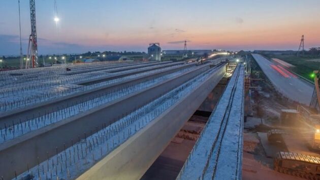 - Сейчас на путепроводе на 1083 км сооружены шесть опор и уложены балки на всех пяти пролетах, - говорится в сообщении.