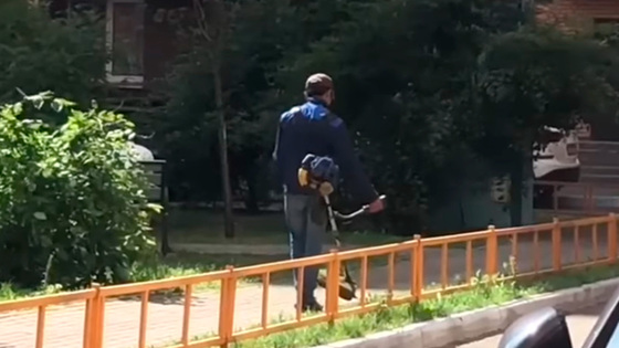 В одном из московских дворов заметили мигранта, сотрудника коммунальных служб, который стриг асфальт. Мужчина медленно ходил по пешеходным дорожкам с включенным триммером в руках. Видео появилось в Facebook-группе «Интересная Москва».
