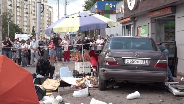«Меня бог сюда отнёс»: Две калининградки чудом не погибли на мини-рынке под колёсами вылетевшего на тротуар «Мерседеса»