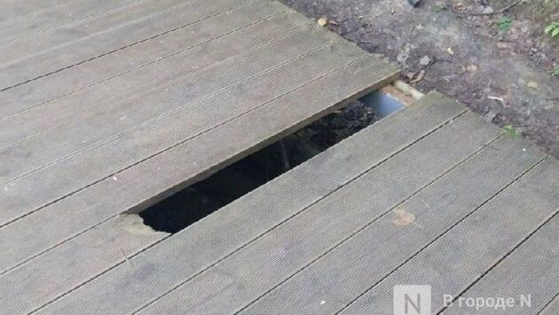 Нижегородцы обратили внимание на то, что экотропа, сделанная на Щелоковском хуторе в рамках II очереди благоустройства, начала разрушаться: в паре мест выломаны доски, ограждения завалились, отсутствуют перила. Фотографиями проблемных мест с ИА «В городе N» поделились читатели.