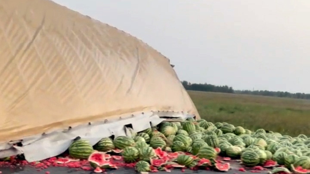 Также в результате ДТП из грузовика вывалились арбузы и раскатились по всей дороге. На участке трассы организовано реверсивное движение. Уборкой арбузов займется обслуживающая организация.