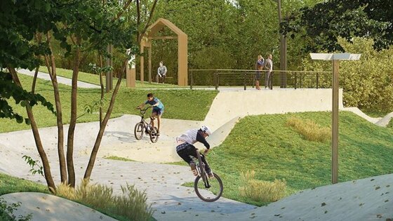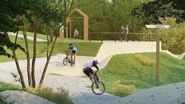 "На северо-востоке Москвы в районе Отрадное в рамках благоустройства территории поймы реки Чермянки ведутся работы по устройству двух памп-треков площадью 612 и 210 кв. м соответственно. Длина трассы большого трека составит почти 180 м, на ней будет девять поворотных углов для изменения направления движения и более скоростного прохождения трассы, им смогут воспользоваться профессионалы. Второй памп-трек меньше, но не менее увлекателен, ведь он предназначен для начинающих. Длина всех секций трассы составит 47 м, а поворотных угла - 3", - приводятся слова замруководителя департамента Сергея Мельникова.