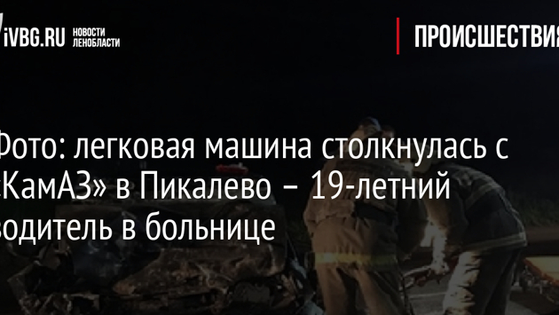 Как сообщают в паблике «Газета "Рабочее слово" г. Пикалево», ночью 26 августа в результате ДТП в Бокситогорском районе в больницу был доставлен 19-летний водитель. По информации ivbg.ru, ДТП произошло около 01:30 на Ленинградском шоссе в Пикалево. Черный «ВАЗ-2115» столкнулся с «КамАЗ». В результате удара водитель легкового автомобиля оказался зажат в салоне. На место прибыла дежурная смена 117 пожарной части. Спасатели с помощью гидравлического инструмента достали пострадавшего из машины и передали врачам. Фото: vk.com/rabochee_slovo