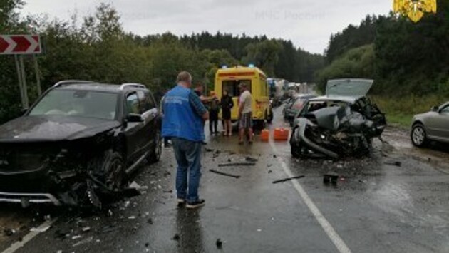 1 сентября около 16 часов на 81 километре дороги "Калуга-Таруса-Серпухов" в Тарусском районе произошла авария. По предварительным данным, на двухполосной дороге с запретом обгона столкнулись встречные машины ВАЗ 2114 и Mercedes. От удара отечественный автомобиль сильно покорежило. По данным ГИБДД, 53-летний водитель отечественной машины не справился с управлением, выехал на встречную полосу и допустил аварию. Он погиб на месте. На месте работали спасатели МЧС, патруль ГИБДД и медики реанимации скорой помощи.