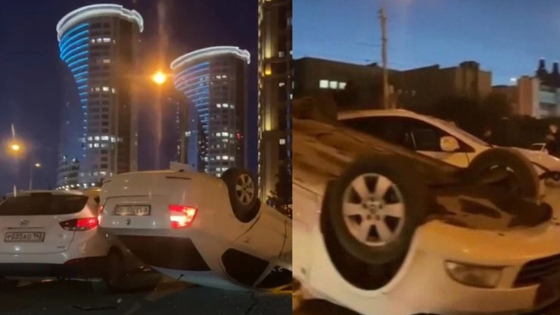 Последствия аварии на фоне 25-этажек снял один из свидетелей. Горожане в соцсетях шутят: «Хороший вид выбрали для аварии».