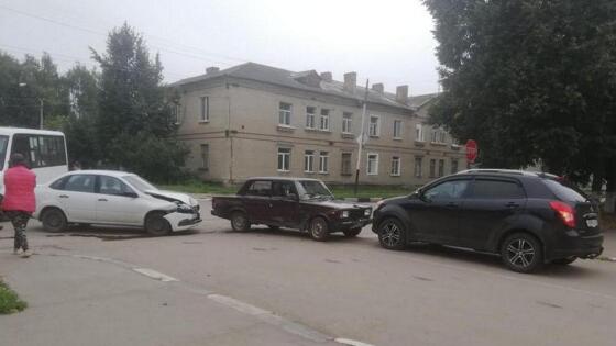 Авария случилась 2 сентября на перекрёстке улиц Первомайская и Шахтёрская. Как рассказал журналистам старший инспектор Руслан Смирнов, столкнулись иномарка и два отечественных автомобиля.