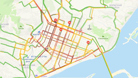 Сегодня, 3 сентября, в Саратове сервис «Яндекс.Пробки» фиксирует десятибалльные заторы на дорогах.