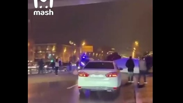 В Москве на Ленинградском проспекте фура упала с эстакады, место аварии попало на видео. Запись опубликовал Telegram-канал Mash.