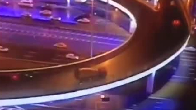 Грузовик протаранил ограждение и вылетел с эстакады в Москве
