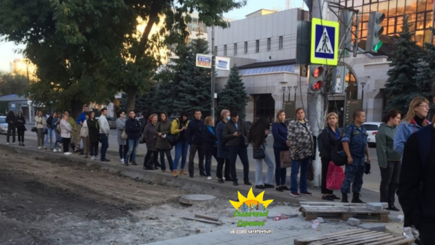 На автобус №41 в центре Саратова образовалась гигантская очередь
