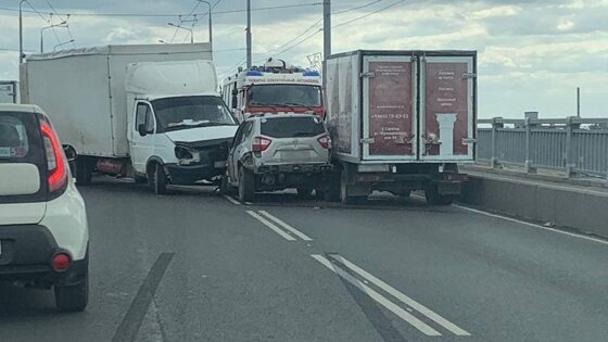 Автомобильное движение на мосту Саратов-Энгельс практически полностью парализовано. Как сообщили очевидцы в соцсетях, днем в районе 2-х часов дня здесь не поделили трассу два грузовика. На мосту через Волгу столкнулись ГАЗель и «Nissan Terrano». В итоге проезд для транспорта оказался закрыт в обе стороны. О пострадавших пока не сообщается. Фото: соцсети