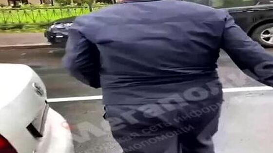 На кадры попал момент после избиения пенсионерки таксистом. Мужчина хлопает дверью автомобиля, при этом на фоне, по всей вероятности, громко плачет избитая пожилая клиентка с инвалидностью. Автор ролика стала свидетелем этой сцены и начала заступаться за потерпевшую со словами «нельзя руку поднимать на женщину», на что обидчик плюнул ей в лицо.