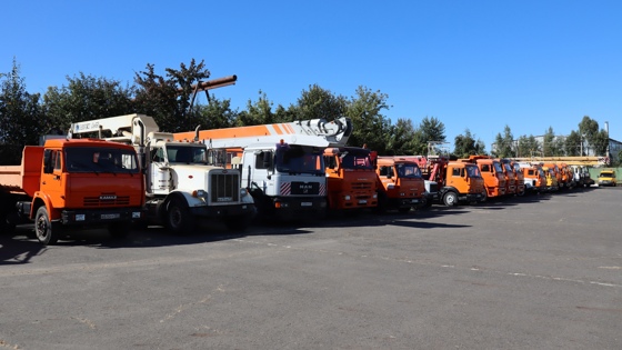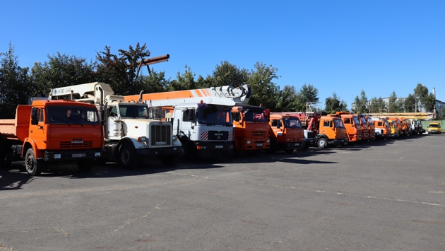 После совещания с губернатором Курской области Романом Старовойтом, Максим Егоров вместе с главой региона осмотрели технику, которую безвозмездно передали в Курскую области. Регион получил 41 машину, в их числе автовышки, экскаваторы, погрузчики и эвакуаторы. Фото: пресс-служба администрации Курской области.