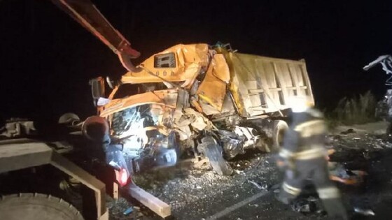 В прокуратуре сообщили, что автобус перевозил 12 человек. При невыясненных обстоятельствах он выехал на полосу встречного движения и столкнулся с грузовиком.