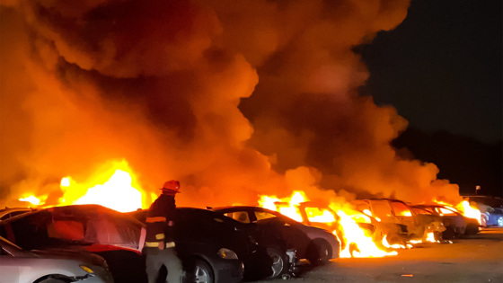 По информации американских журналистов, пожар произошел из-за удара молнии в один из припаркованных автомобилей. После возгорания транспортного средства огонь быстро перекинулся на соседние машины. Всего на стоянке страховой компании находились около 40 автомобилей. Несмотря на то, что в ликвидации пожара участвовало несколько десятков сотрудников экстренных служб, ни один автомобиль не удалось спасти.