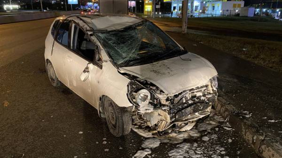 Honda перевернулась на крышу и загорелась на подъезде к Димитровскому мосту