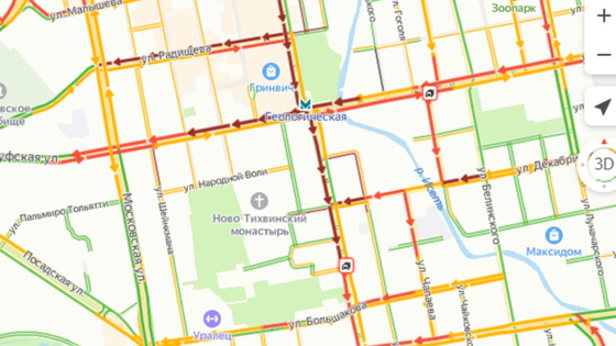 По информации источника URA.RU, по предписанию ГИБДД были изменены режимы светофоров на перекрестке улиц 8 Марта и Большакова. С этим может быть связано затруднение движения.