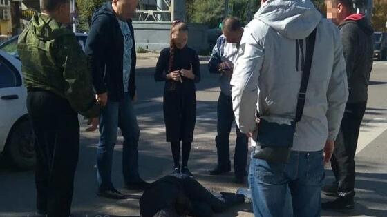 На фото, размещённом в Сети, можно увидеть лежащую на дороге девушку в куртке. Вокруг неё столпились свидетели произошедшего.