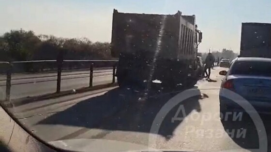 Очевидец указал, что авария произошла на Северной окружной (спуск от Канищева в сторону озера Дикая утка). На видео видно, что самосвал столкнулся с тремя легковушками. Спереди них стоят ещё две повреждённые машины.